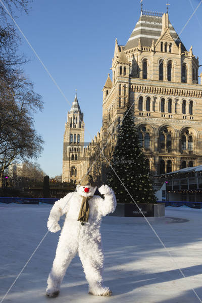 Keywords: London,England,UK,United Kingdom,The Snowman,show,photocall,Peacock Theatre,The Peacock,Natural History Museum,Ice Rink,outdoors,weather,sunny,wintry,cold,Snowman,performer