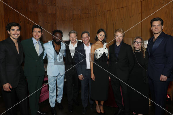 PersonInImage: (L-R) Henrique Zaga, Henry Golding, Babs Olusanmokun, Cary Elwes, Adam Fogelson (Chairman, Lionsgate Motion Picture Group), Eiza Gonzalez, Jerry Bruckheimer, Keri Moore (Co-Pres. MPG Marketing Lionsgate) and Henry Cavill