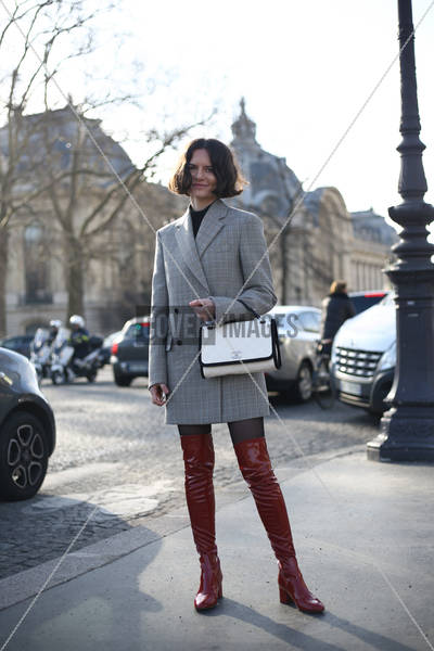 Keywords: #CalvinKlein,#Chanel,#MartaCygan,#PFW,#ParisFashionWeek,Calvin Klein coat,Calvin Klein jacket,Chanel bag,Chanel purse,Marta Cygan,PFW,Paris Fashion Week,Paris Fashion Week Fall 2018,Paris street fashion,brunette,chin length hair,chunky heeled boots,eye contact,fashion week,full length,grey coat,grey jacket,kamerablick,over the knee boot,patent leather boots,red boots,street fashion,street style,thigh high boots,white bag,white purse