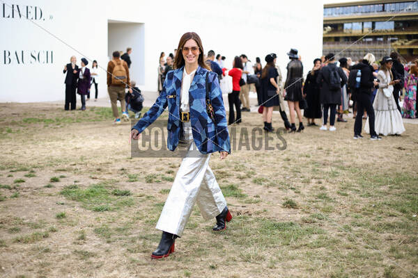 Keywords: #ChristianDior,#Dior,#GalaGonzalez,#PFW,#ParisFashionWeek,Christian Dior belt,Dior belt,Fashion Week,Gala Gonzalez,PFW,Paris Fashion Week,Paris Fashion Week Spring 2019,Paris street fashion,Paris street style,belt,black belt,blue blazer,blue jacket,brown hair,brunette,dark hair,denim jacket,full length,jean jacket,metallic pants,middle part,patchwork blazer,patchwork jacket,pussy bow blouse,shades,sheer blouse,side part,silver pants,street fashion,street style,sunglasses,sunnies,white blouse,white top