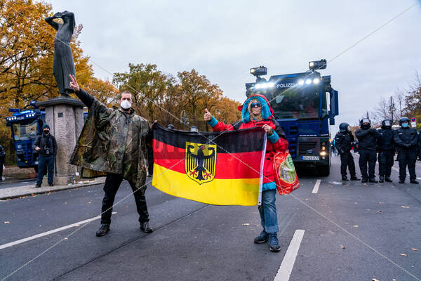 Keywords: police presence,protester,sculpture,movement,epidemic,water cannon,protest,protest march,Berlin,lateral thinking,virus,capital city,pandemic,measures,infection protection law,conspiracy theorists,demonstrator,restrictions,Berliners,large demo,so cial distancing,infection control specifications,SARS-CoV-2,statue,demo,corona,anti-corona demo,conspiracy theorist,sulu_vmenck,liwithations,police officer,national flag,coronavirus,federal capital,police officers,conspiracist,Reichsburger,flag,hygiene measures,German,restriction,shutdown,assembly,policewoman,Der Rufer,corona crisis,demonstrators,rally,policies,metropolis,banner,Germany,water gun,ensign,standstill,Covid-19,left,policeman,pennant,mass rally,virus infection,protective measure,crisis,police,hygiene demo,right of assembly,concerned burgers,pandemia,rights,Gerhard Marcks,demonstration,infectious disease,corona measures,infection protection measures,2020,transparent,capital,lockdown