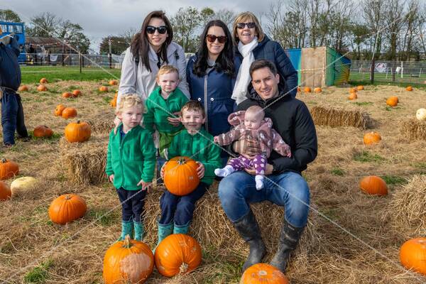 PersonInImage: The pumpkin patch runs until 5th November. Enjoying the day were Jessica O'Brien, Tom O'Brien, Archie O'Brien, Ollie O'Brien, Nicola O'Keeffe, Linda Stanton and David O'Keeffe holding 6 month old Millie O'Keeffe, all from Cork