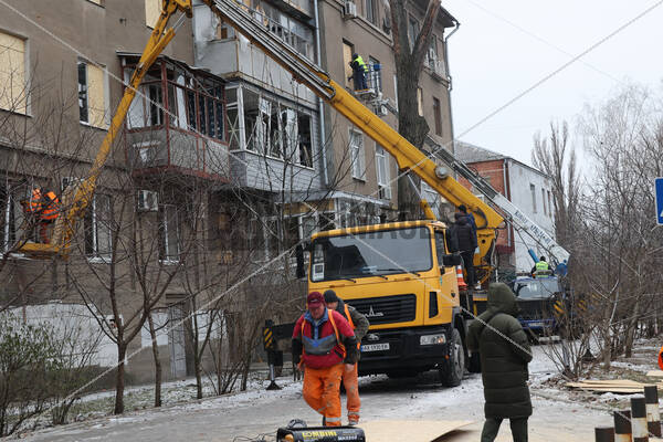 Keywords: Ukraine conflict,Russian invasion,Ukraine war,war,conflict,Russia-Ukraine war,debris,rubble,damage,destruction,missile,rocket,Kharkiv,insulation,window,particle board,repair,winter,cold,aerial work platform,AWP