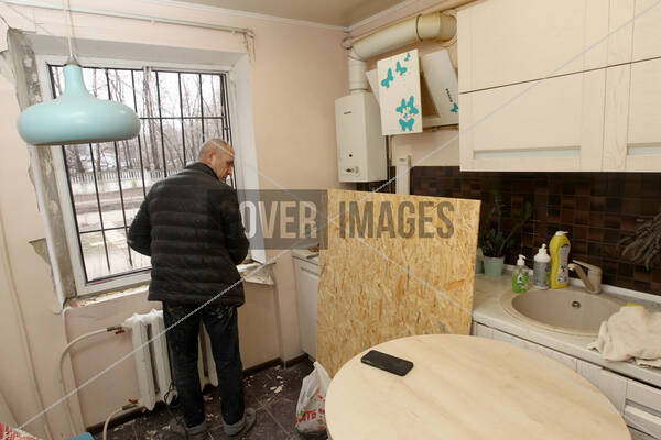 Keywords: Ukraine conflict,Russian invasion,Ukraine war,war,conflict Russia-Ukraine war,Dnipro,emergency,aftermath,missile,damage,destruction,window,replace,repair,apartment block,kitchen