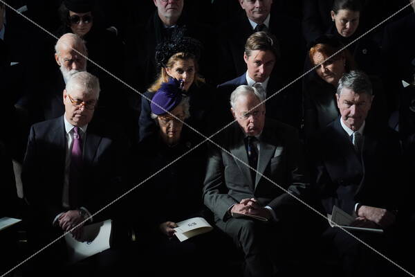 PersonInImage: (front row left to right) Prince Andrew the Duke of York, the Duchess of Gloucester, the Duke of Gloucester, Admiral Sir Tim Laurence and (second row left to right) Prince Michael of Kent, Princess Beatrice, Edoardo Mapelli Mozzi and Sarah Duchess of York