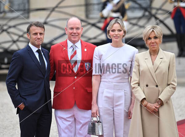 PersonInImage: French President Emmanuel Macron, Prince of Monaco Albert II, Princess of Monaco Charlene, Brigitte Macron