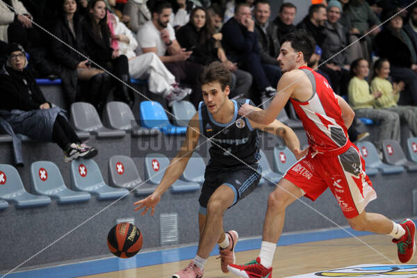 PersonInImage: Guard Ivan Koldomasov (L) of BC Dnipro is seen in action with a player of BC Rivne