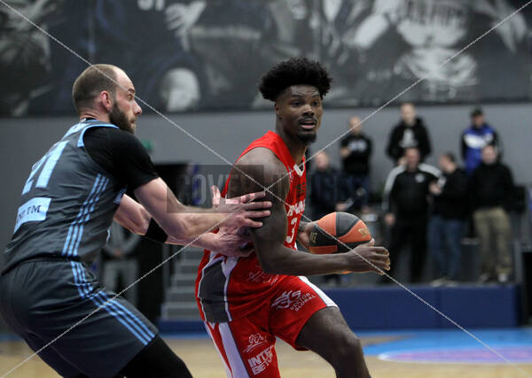 PersonInImage: Forward Stanislav Tymofeienko (L) of BC Dnipro and forward Roderick Brown of BC Rivne are seen in action