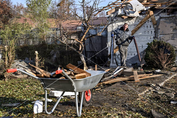 A man cleans up the damaged structures around the house of the former FC Metalurh Zaporizhzhia player Serhii Kliuchyk which has been destroyed by a Russian night attack with Shahed drones, Zaporizhzhia, southeastern Ukraine