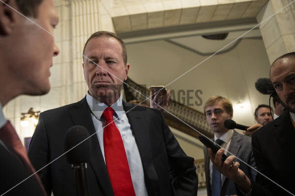 United States Senator Eric Schmitt (Republican of Missouri) speaks to the press outside of the US Senate office of US Vice President-elect JD Vance about how he believes he is not fit to say whether or not the allegations against Gaetz are true, and he puts his trust in the justice system