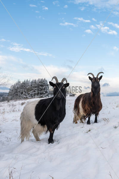 Keywords: Environmental Issues,Seasons,Animals,Symbol image,Symbol photo,Weather image,Weather photo,Fur,Horns,Animal husbandry,Goats,Goat,Goat species,Animal species,Winter,Winter weather,Snow,Onset of winter,cool,Cold,snowy,nature,weather