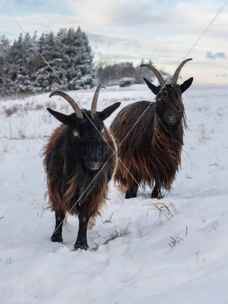 Keywords: Environmental Issues,Seasons,Animals,Symbol image,Symbol photo,Weather image,Weather photo,Fur,Horns,Animal husbandry,Goats,Goat,Goat species,Animal species,Winter,Winter weather,Snow,Onset of winter,cool,Cold,snowy,nature,weather