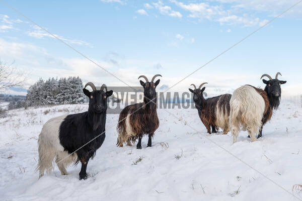 Keywords: Environmental Issues,Seasons,Animals,Symbol image,Symbol photo,Weather image,Weather photo,Fur,Horns,Animal husbandry,Goats,Goat,Goat species,Animal species,Winter,Winter weather,Snow,Onset of winter,cool,Cold,snowy,nature,weather