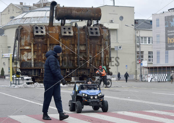 Keywords: Russian-Ukrainian war,Russian aggression,war in Ukraine,war,shelling,aftermath,destruction,transformer,power transformer,Battle for Light,installation,Kontraktova Ploshcha,Kyiv,ride-on car