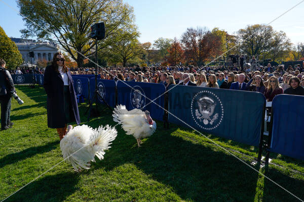 President Joe Biden pardons turkeys Peach and Blossom from Minnesota to celebrate the 77th anniversary of the National Thanksgiving Turkey presentation on the South Lawn of the White House