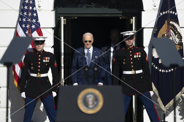 United States President Joe Biden arrives to pardon the National Thanksgiving Turkey at the White House