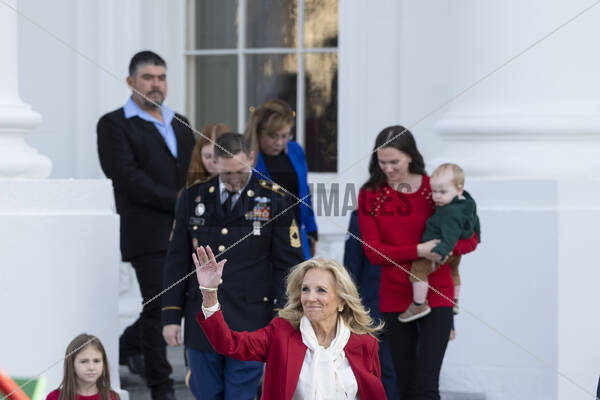 First Lady Dr. Jill Biden receives the official 2024 White House Christmas Tree, an 18.5 foot Fraser Fir from Newland, North Carolina at the White House