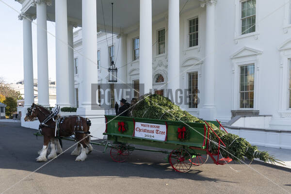 First Lady Dr. Jill Biden receives the official 2024 White House Christmas Tree, an 18.5 foot Fraser Fir from Newland, North Carolina at the White House