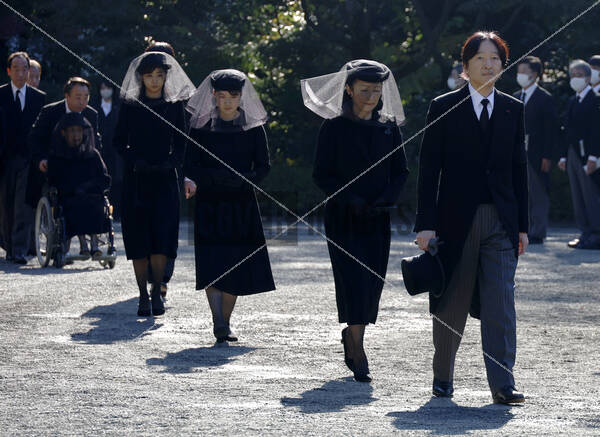 PersonInImage: (R-L) Japan's Crown Prince Akishino and Crown Princess Kiko walk followed by Princess Aiko and Princess Kako to attend a funeral service for Princess Mikasa
