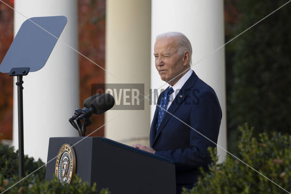 United States President Joe Biden makes a statement after the Israeli approval of a ceasefire in Lebanon, at the White House
