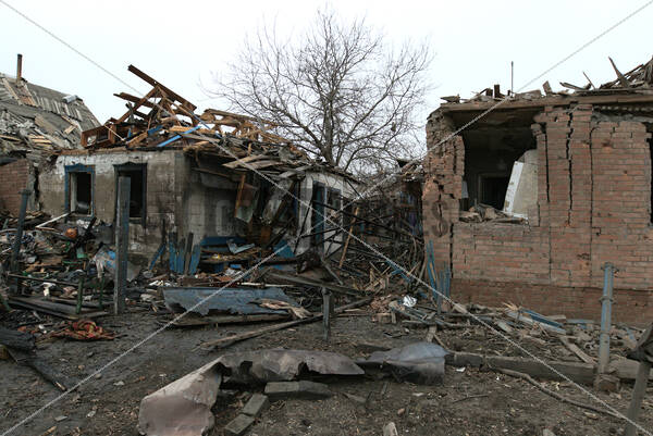 Private houses destroyed by Russian shelling in the village of Yasnohirka near Kramatorsk, Donetsk region, eastern Ukraine