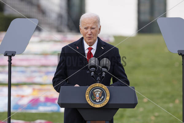 United States President Joe Biden gives remarks during an event to commemorate World AIDS Day on the South Lawn of the White House in Washington, DC, US, on Sunday, Dec. 1, 2024. Biden is unveiling the AIDS Memorial Quilt to recognize those who have died due to AIDS-related illnesses.