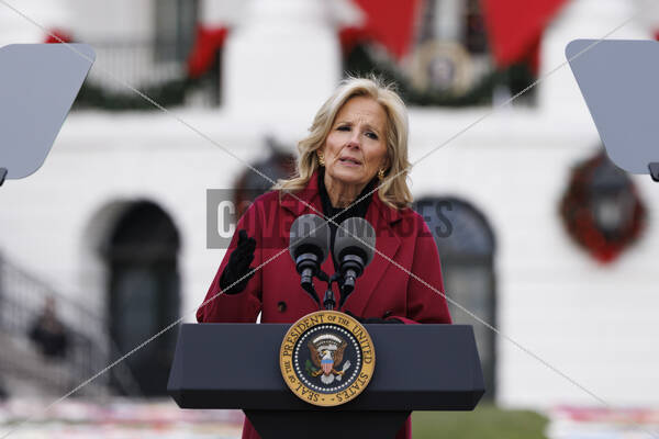 First lady Dr. Jill Biden gives remarks during an event to commemorate World AIDS Day on the South Lawn of the White House in Washington, DC, US, on Sunday, Dec. 1, 2024. Biden is unveiling the AIDS Memorial Quilt to recognize those who have died due to AIDS-related illnesses.