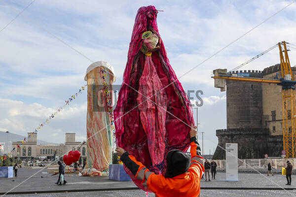 Keywords: provocazione,activist,feminist,artist,Cristina Donati Meyer,piazza Municipio,Naples,work,the great beauty,vagina,L'\''installazione,autorizzata,rimossa,police,Meyer,puffins,Gaetano Pesce,polemiche.,art