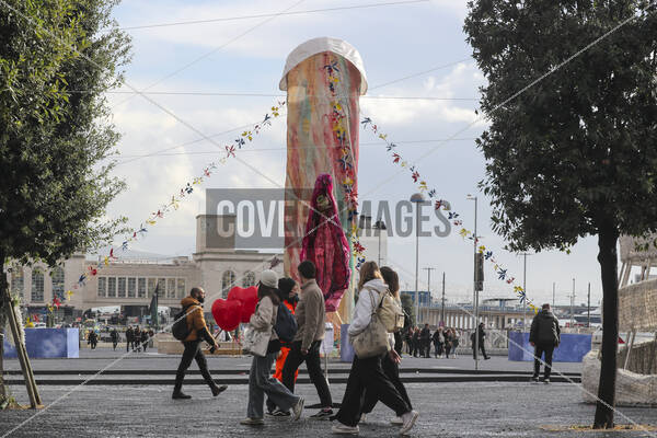 Keywords: provocazione,activist,feminist,artist,Cristina Donati Meyer,piazza Municipio,Naples,work,the great beauty,vagina,L'\''installazione,autorizzata,rimossa,police,Meyer,puffins,Gaetano Pesce,polemiche.,art