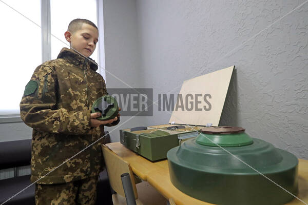 Keywords: Ukraine conflict,Russian invasion,Ukraine war,war,conflict,Russia-Ukraine war,education,high school,college,defence,military,Boryspil,Kyiv region,explosive,child,camouflage,uniform,mine