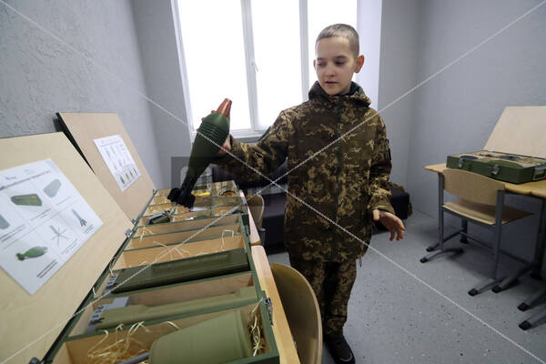 Keywords: Ukraine conflict,Russian invasion,Ukraine war,war,conflict,Russia-Ukraine war,education,high school,college,defence,military,Boryspil,Kyiv region,explosive,child,camouflage,uniform,mine
