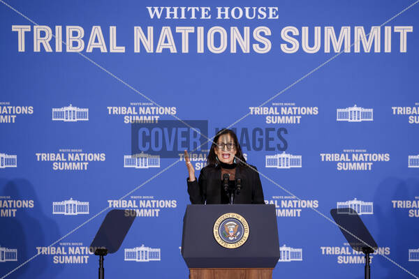 United States Secretary of Interior Deb Haaland delivers remarks during the 2024 White House Tribal Nations Summit at the Department of Interior in Washington, DC, USA, 09 December 2024. The Biden-Harris administration has prioritized strengthening nation-to-nation relationships, honoring trust and treaty obligations with federally recognized Tribes, and advancing Tribal sovereignty and self-determination