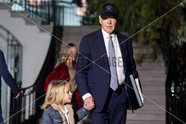 United States President Joe Biden and his grandson, Beau Biden Jr., walk to board Marine One on the South Lawn of the White House in Washington, DC on Tuesday, December 17, 2024. Biden and members of his family are traveling to Wilmington, Delaware ahead of the anniversary of the deaths of his first wife, Neilia, and daughter, Naomi.