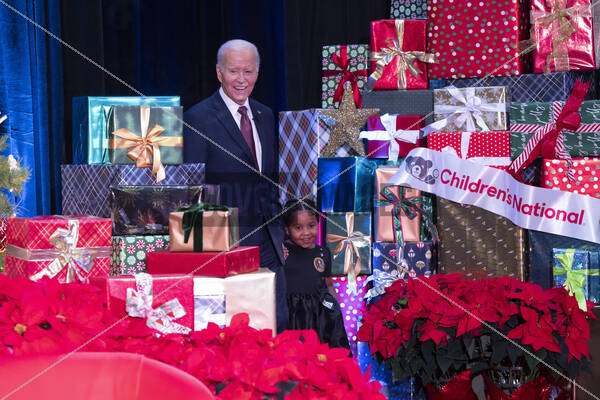 United States President Joe Biden arrives to pay a holiday visit to patients and families at Children’s National Hospital in Washington