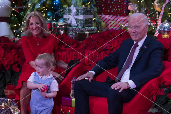 First lady Dr. Jill Biden and United States President Joe Biden watch as John “Reuben” Unkovic plays during a holiday visit to patients and families at Children’s National Hospital in Washington