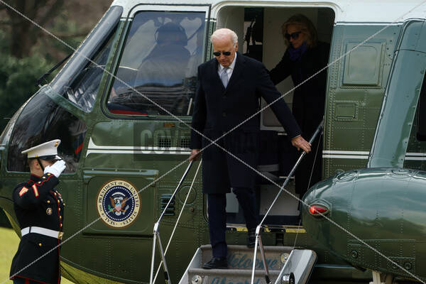United States President Joe Biden and first lady Dr Jill Biden return to the White House after arriving on Marine One