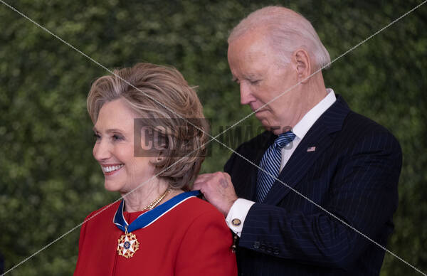 United States President Joe Biden presents former Secretary of State Hillary Clinton with the Presidential Medal of Freedom during a ceremony in the East Room of the White House on Saturday January 4, 2025. The Presidential Medal of Freedom is the Nation’s highest civilian honor, presented to individuals who have made exemplary contributions to the prosperity, values, or security of the United States, world peace, or other significant societal, public or private endeavors