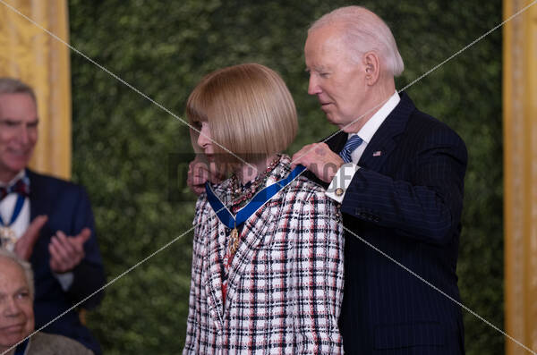 United States President Joe Biden presents Vogue Editor in Chief Anna Wintour with the Presidential Medal of Freedom during a ceremony in the East Room of the White House on Saturday January 4, 2025. The Presidential Medal of Freedom is the Nation’s highest civilian honor, presented to individuals who have made exemplary contributions to the prosperity, values, or security of the United States, world peace, or other significant societal, public or private endeavors