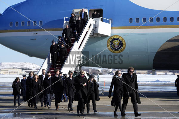 Members of the Carter family arrive on Special Air Mission 39 before the flag-draped casket of former United States President Jimmy Carter is taken from the plane at Joint Base Andrews, Maryland, Tuesday, January 7, 2025. Carter died Dec. 29, at the age of 100