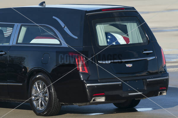 The casket of former United States President Jimmy Carter arrives at Joint Base Andrews, Maryland, just outside of Washington, DC on Tuesday, January 7, 2025. A State Funeral will be held in the late President’s honor before he is buried in Plains, Georgia