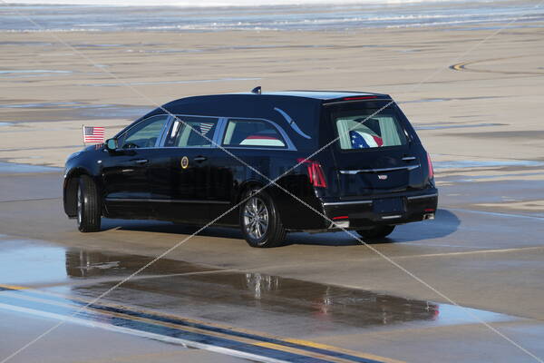 The casket of former United States President Jimmy Carter in a hearse after it was ceremonially carried from Special Air Mission 39 as it arrives at Joint Base Andrews, Maryland, just outside of Washington, DC on Tuesday, January 7, 2025. A State Funeral will be held in the late President’s honor before he is buried in Plains, Georgia