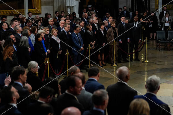 Members of Congress and guests attend a ceremony for late former US President Jimmy Carter in the Rotunda of the US Capitol in Washington, DC, US, on Tuesday, Jan. 7, 2025. Carter, the former Georgia peanut farmer who, as president, brokered a historic peace accord between Israel and Egypt despite a term marked by inflation, an oil crisis, and the Iran hostage crisis died on December 29 at the age of 100.