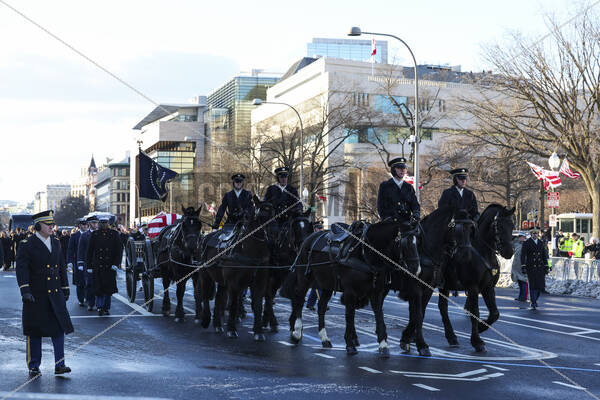 The United States Army's Caisson Detachment carries the casket of Jimmy Carter, the former U.S. president who died on December 29 at the age of 100, to lie in state at the U.S. Capitol building in Washington, U.S. January 7, 2025.
