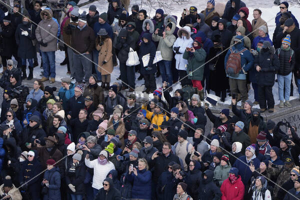 Spectators look on as the flag-draped casket of former President Jimmy Carter is transferred to a horse-drawn caisson at the U.S. Navy Memorial before traveling on to the Capitol in Washington, Tuesday, Jan. 7, 2025, where Carter will lie in state. Carter died Dec. 29 at the age of 100