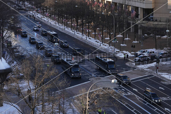 Family members and a motorcade arrives at the U.S. Navy Memorial before the casket of former President Jimmy Carter is transferred to a horse-drawn caisson before traveling on to the Capitol in Washington, Tuesday, Jan. 7, 2025, where Carter will lie in state. Carter died Dec. 29 at the age of 100