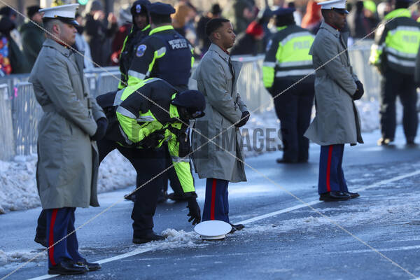 A police officer picks up The U.S. Marine's cap, on the day when the casket of Jimmy Carter, the former U.S. president who died on December 29 at the age of 100, will lie in state at the U.S. Capitol building in Washington, U.S. January 7, 2025