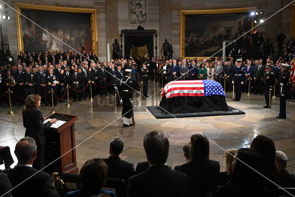 United States Vice President Kamala Harris delivers a eulogy at the Lying in State Ceremony for former President Jimmy Carter at the US Capitol Rotunda in Washington, DC on January 7, 2025. Carter, the 39th President of the United States, died at the age of 100 on December 29, 2024 at his home in Plains, Georgia.