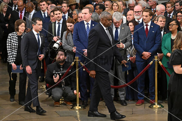 US Transportation Secretary Pete Buttigieg (L) and US Defense Secretary Lloyd Austin (C) arrive for former US President Jimmy Carter's lying in state ceremony at the US Capitol Rotunda in Washington, DC on January 7, 2025. Carter, the 39th President of the United States, died at the age of 100 on December 29, 2024 at his home in Plains, Georgia