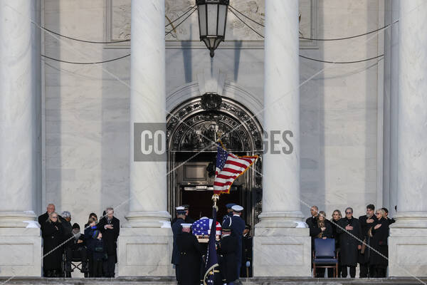 Members of the Carter family look on as U.S. Military joint force pallbearers carry the flag-draped casket of former President Jimmy Carter into the US Capitol in Washington, D.C. on Tuesday, January 7, 2025. Former President Jimmy Carter, the 39th President of the United States, died at the age of 100 on December 29, 2024 at his home in Plains, Georgia.