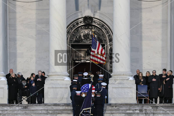 Members of the Carter family look on as U.S. Military joint force pallbearers carry the flag-draped casket of former President Jimmy Carter into the US Capitol in Washington, D.C. on Tuesday, January 7, 2025. Former President Jimmy Carter, the 39th President of the United States, died at the age of 100 on December 29, 2024 at his home in Plains, Georgia.